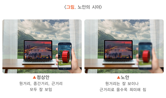 - 책이나 스마트폰을 멀리 두어야 더 또렷하게 보임