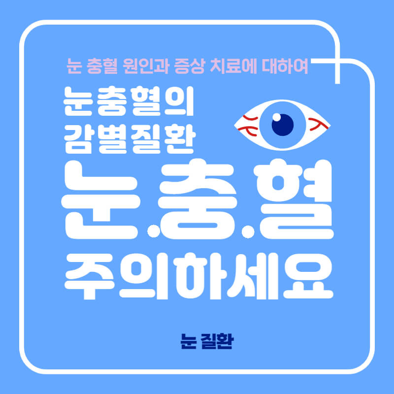 눈 충혈 또는 빨간 눈은 흰색인 공막을 배경으로 하여 공막 위의 투명한 조직인 결막의 혈관이 확장 또는 증식하여, 흰 눈동자가 빨갛게 보이는 상태를 단순히 묘사하는 용어입니다. 한편, 결막의 혈관이 터져서 결막밑출혈이 발생한 경우에도 눈 충혈이라고 표현하는 경우가 있는데, 엄밀히 말하면 결막밑출혈은 충혈과는 다른 원인에 의해 발생하며, 다른 양상을 가지고 있습니다. 따라서 일반적인 눈 충혈은 결막밑출혈이 아닌 결막의 혈관 확장 또는 증식이 나타난 상태를 의미합니다.