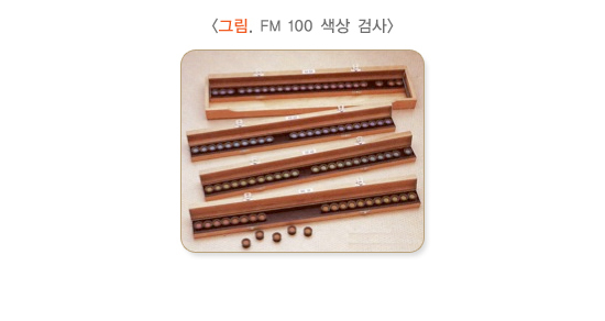 색 순서대로 배열된 일련의 색패들을 무작위로 섞은 후 다시 원래의 순서대로 배열하는 방법으로, 색각이상을 제일, 제이, 제삼 색각이상으로 분류하고 그 정도를 판정하기 위한 검사입니다.