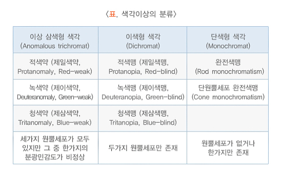 1. 원뿔세포의 이상 정도에 따라 분류