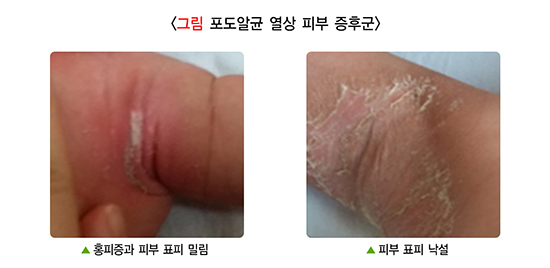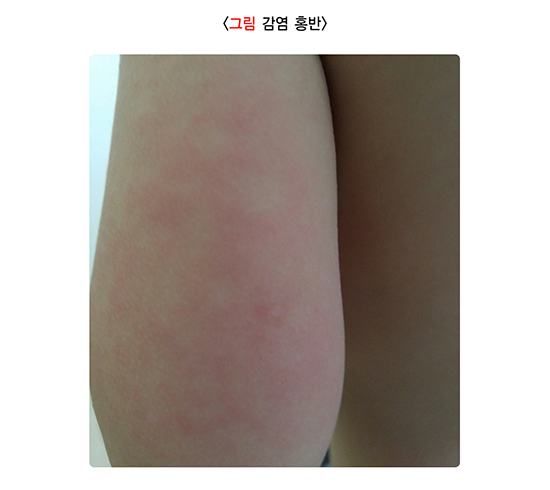 '발진'이란 피부의 정상적인 모습과 달리 피부의 색깔이 변하거나 부어오른 병변을 의미합니다.