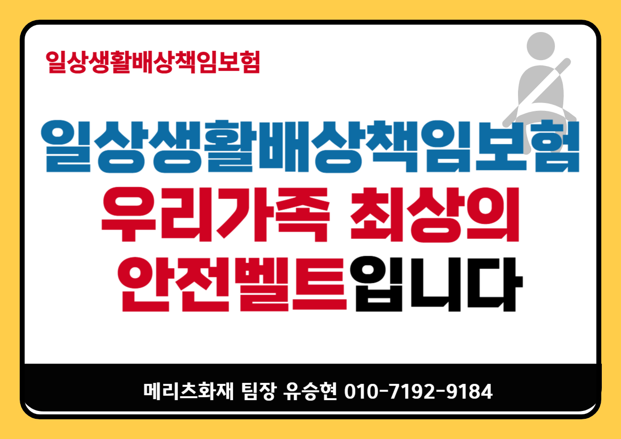 일상생활배상책임 보험은 본인이 일상생활에서 발생할 수 있는 사고로 인해 타인에게 피해를 주었을 경우, 배상 책임을 보장하는 아주 중요한 보험이며, 꼭 들어야 하는 보험상품입니다.